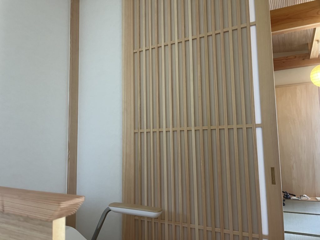 まずは外観を見させていただき圧巻でした。軒裏が板張りなのですが、軒裏が持つ働きと意匠とのバランスが抜群で、今までに見た事がない素敵さでした。